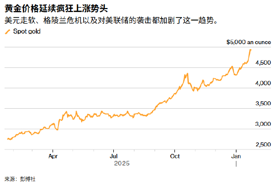 随着黄金逼近5000美元,高盛集团将年底黄金价格预期从之前的每盎司4900美元上调至5400美元,理由是私人投资者和各国央行的需求不断增强。此外,在全球政策不确定性持续存在的情况下,私人投资者可能会进一步分散投资”。