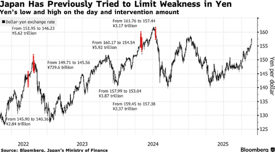 2024年,日本政府曾斥资近1000亿美元购买日元以支撑汇率。在四次干预中,每次日元兑美元汇率都在160左右,这使得该水平被视为可能再次采取行动的粗略标志。
