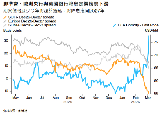 除了避险外,当前市场正在被通胀担忧所主导。能源价格飙升带来的通胀风险,可能限制黄金的涨幅,因该趋势迫使美联储及其全球同业更长时间维持不变,甚至升息。交易员预测美联储今年有80%的机率会降息超过四分之一个百分点,但是不确定性上升,其他主要央行的降息预期也被弱化,因为较高的借贷成本对不支付利息的贵金属来说为利空。
