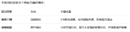 IEA有意进行史上最大规模的储备释放,短期来看,政策干预能够为油价降温、稳定市场情绪;但长期来看,真正的解药仍是霍尔木兹海峡的和平与畅通。但关键的因素还是在于霍尔木兹海峡何时能正常重开,主要原油供应国的输出重回正常。所以面对当前层出不穷的局势变化和消息,市场仍随时做好多空两手准备。