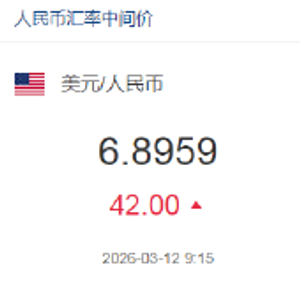 3月12日,人民币兑美元中间价报6.8959,下调42点。