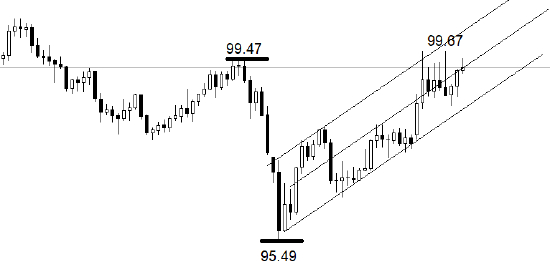 行情方面,日线级别,美元指数处于上升通道内部,没有出现明显的筑顶结构,上涨波段在通道内部延续的概率较高。中期低点在95.49,中期高点在99.47,当前上涨波段的最高点是99.67,已经突破中期高点,未来将寻找新的中期高点。