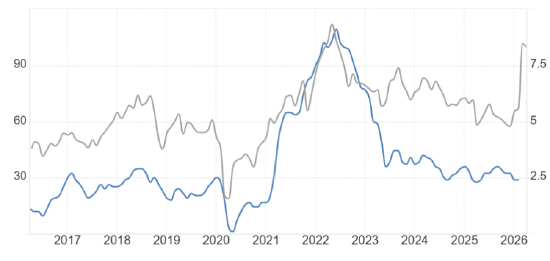 4月10日,ATFX:3月份,美国和伊朗之间的战争正处于白热化,国际油价在3月初的时候就已经飙高到110美元上方,即便下旬国际油价有所回落,但整体报价都在90美元附近。美国的CPI数据对国际油价的变动异常敏感,高油价势必导致高通胀。