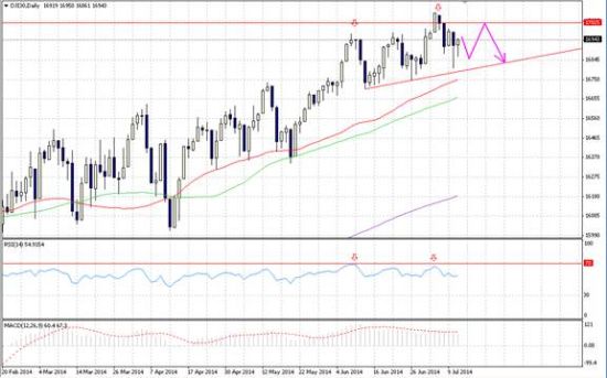 美股过去一星期录得今年4月以来最大的单周跌幅,反映大市屡创新高后投资者开始担心美股已经偏高。投资者目光正聚焦于本周多家重磅科技公司和金融机构次季业绩。此外,美联储主席耶伦本周二和周三将向国会发表证词,或会为加息时间带来启示,将主导美股未来数日表现。道指数上周五升28点,收报16943;标普500指数升2点,报1967;纳指升19点,报4415点。葡萄牙圣灵银行(BancoEspiritoSanto)母公司违约事件似乎未有对美股构成重大影响。上周全周计,标普500指数跌0.9%,纳斯达克指数跌1.57%,均为今年4月以来最大跌幅;道指则只跌0.73%。
