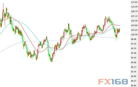 国际原油周三(7月23日)收出带上下影线的大阳线,油价上方最高升至103.34,下方最低位于101.79。