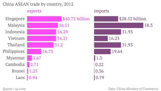 而从中国和东盟国家的贸易关系来看,新加坡、马来西亚和印度尼西亚仍是中国在该地区的主要贸易伙伴。