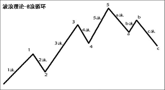 艾略特波浪理论中,任何一个完整的走势都由8个浪完成,其中前5个浪为驱动阶段,用数字1-5标示,后3个浪为调整阶段,用abc字母进行表示。当这个8浪的循环完成之后,市场又将进入新的循环。