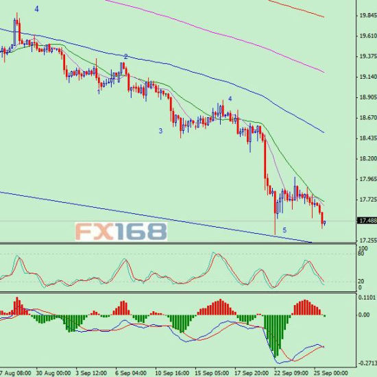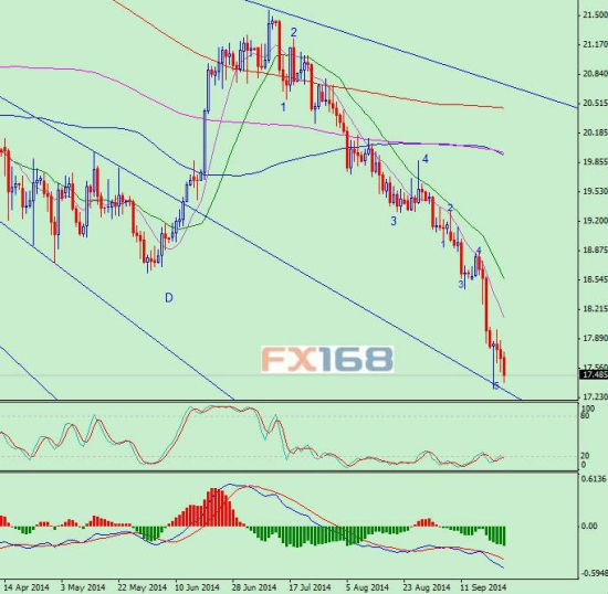 周四(9月25日)亚洲和欧洲时段开始国际现货白银价格大幅下滑,并且一度触及17.402的日内低点,较周一触及的4年低位17.331仅一步之遥。