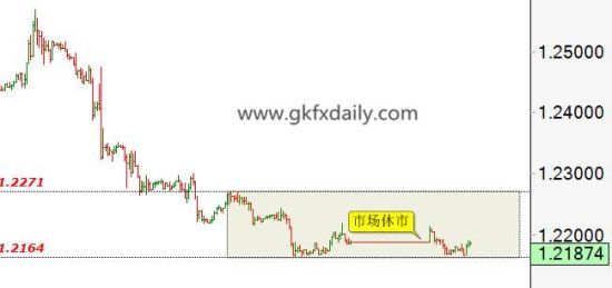 市场处于小幅波动内,受国际众多市场休市影响,欧元汇价处于水平线之后的小幅波动内,目前在1.2271至1.2164之间波动,短期操作以日内为主。