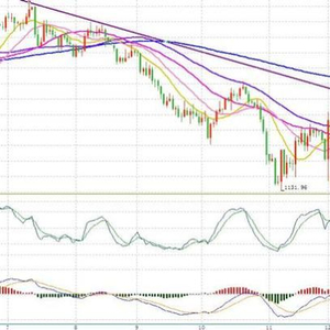 日线图上,现货黄金上上周五收涨13.80美元,录得大阳线。黄金收复多条均线(13,21,34,55),收于55日均线上方,持稳于2012年以来下行趋势的上方。指标上看,MACD红色动能柱与前一交易日持平,双线于零轴上方金叉向上;KD指标双线金叉延伸向上;RSI录得21.79,拐头向下。
