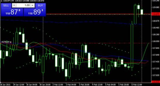 美日日图上看,上周五已经突破之前118.80的压力位,现在有回调下降迹象,Alligator鳄鱼指标显示有收拢上升的现象。119的上边界已经有效突破,可顺势进多单进场,设好止损。短线建议进行高抛低吸。