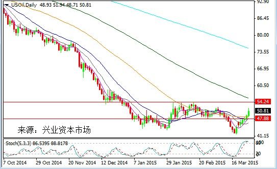 与此同时,今日早间伊拉克局势也出现恶化,以美国为首的联盟军开始对伊拉克重要战略城市提克里特的伊斯兰国武装人员发动空袭,随后美国军方确认这一消息。虽然也门本身并不是重要的产油国,但却控制着重要的石油运输通道亚丁湾和曼德海峡,投资者不得不担忧中东石油运输的安全问题,以及沙特和其他海湾国家将被卷入战斗的风险。在这一利好因素提振下,今早油价再度迎来急涨,其中美国原油一度测试51美元/桶整数关,布油也大涨逾4%逼近60美元/桶大关。