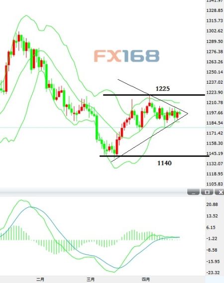 日内欧市盘初,现货黄金窄幅震荡于1200关口附近,最低触及1197.95水平,金价似乎暂时也很难突破1180-1225的震荡区间。