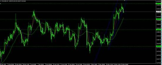 黄金连续试探1232附近压力后未能有效突破,且4小时线上连续收得两连阴,日内可能回调至1212附近,但现在仍处于上涨趋势当中,短线可以在1232附近轻仓做空,等回至1212,1207附近再进多。