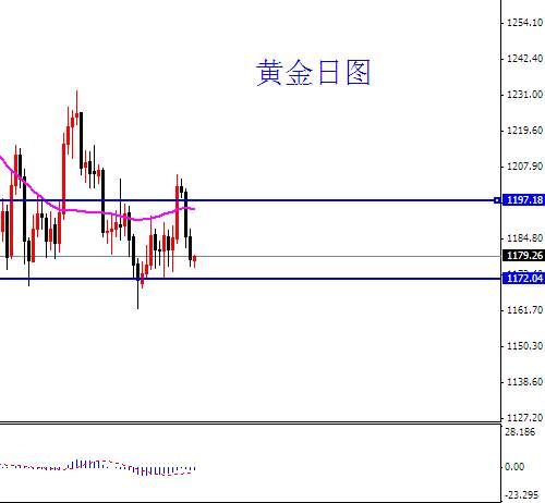 黄金周二最高1188美元/盎司,最低1176美元/盎司,收于1178美元/盎司,下跌7美元,日图收中阴,日、4小时周期延续震荡,30分钟图表下跌趋势不变但MACD指标底部背离明显,下方依然关注1174关键支撑,此位置在有效下破之前难有大的跌幅,暂无交易策略。