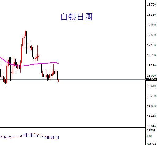 白银昨日再创新低至15.73,结束近一个月的小区间震荡走势,日图依旧维持震荡格局,价格处于底部位置,下方空间有限,30分钟图标下跌趋势不变,5分钟上涨尚未结束,大小周期不同步,暂无交易策略。
