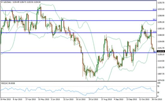 美国商品期货交易委员会(CFTC)数据显示:截至10月27日当周,在Comex, 对冲基金和基金经理持有的黄金净多头头寸自8个半月高位下滑,主要市场忧虑美联储在12月会议加息。另外,全球最大的现货黄金上市交易基金SPDR Gold Trust黄金持仓量减少2.98吨,至689.28吨,反弹投资者减少多头头寸,从日线图来看,金价延续调整趋势,跌破1140关口,连续第四日下跌,将测试1132/1130美元(黄金分割线38.2%的回吐位) 。从周线图来看,现货黄金价格未能回升至分水岭1150美元(从1132.16美元到1307.49美元的61.8%回吐位),跌至四周低点的1133美元(接近黄金分割线的回吐位) ,技术走势尚未具备扭转,将下试,关键在于能否守稳1130美元(黄金分割线的回吐位)。若守稳在该水平,短期有望反弹至1138/1140美元。