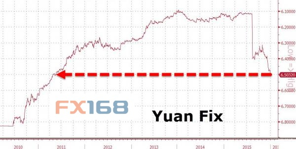 2016年首日人民币中间价大幅调弱至6.5032,为2011年5月来首次突破6.5元关口。在岸人民币开低0.28%,至6.5120,为2011年4月末来最弱,离岸人民币贬幅亦扩大。