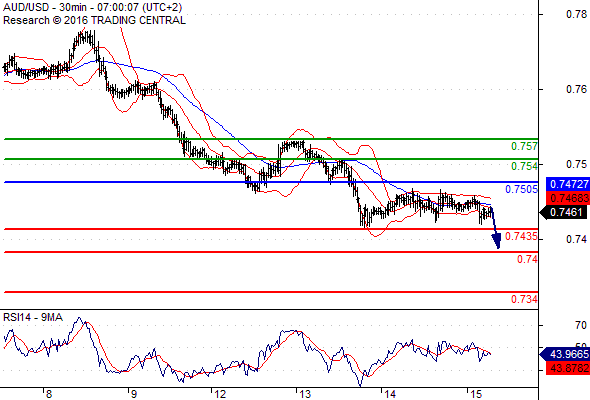 交易策略: 在 0.7505 之下,看跌,目标价位为 0.7435 ,然后为 0.7400 。