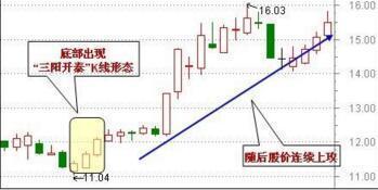 股价在低档经过较长时间的整理之后,连续走出三根小阳线,形成“红三兵”走势,这是一波行情启动的信号。