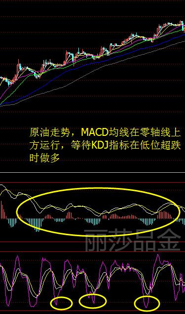 2,单边行情:在上升趋势中,MACD均线在零轴线上方运行,当KDJ运行到低位超跌时进行做多,下降趋势中,MACD均线在零轴线下方运行,等待KDJ运行到高位超买区域进行做空。
