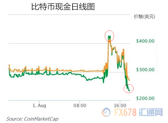 比特币正式分叉,新币“比特币现金”上演过山车行情