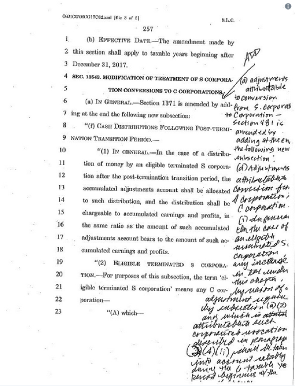 该法案的文本终于在当日美东时间下午6点30分公布,但民主党人仍然愤怒地认为共和党人没有给时间他们阅读。他们还嘲笑了一系列立法的变化,竟是最后一分钟潦草地手写在税改文本旁边。