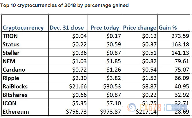 不止瑞波币,加密货币市场2018年首秀百花齐放