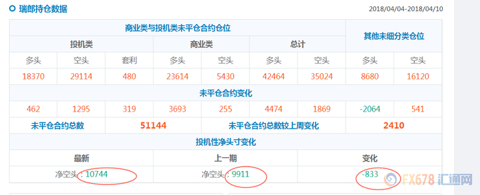 其次根据美国商品期货交易委员会的数据显示,投资者出于对瑞郎将继续走软的预期,净空头仓位也出现了上升。