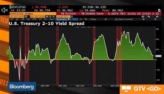 他认为,如果美联储今年再次加息,2-10年期收益率息差倒挂的可能性大于50%,而一旦美联储如其6月预测的那样再加息两次,那么2-10年期收益率倒挂将板上钉钉。