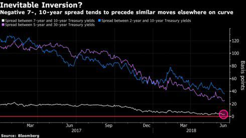 根据BMO美国利率策略负责人Ian Lyngen的说法,下周的7年期公债标售可能导致该期限公债表现不佳,因对贸易战和全球经济成长的担忧支撑较长期公债收益率,令利差降至0以下。他表示,尽管包括2年/10年和5年/30年期公债收益率差在内的的热门曲线走势可能需要数周甚至更长时间才能出现倒挂,但投资者料将把最初的反转视为未来走势的征兆。