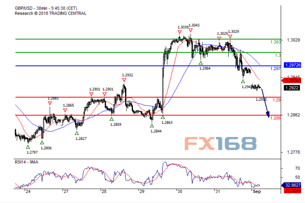 交易策略:于1.2970下方做空,目标看至 1.2900和1.2860;而如果汇价升破1.2970,则将进一步上涨,目标指向1.3000和1.3030。