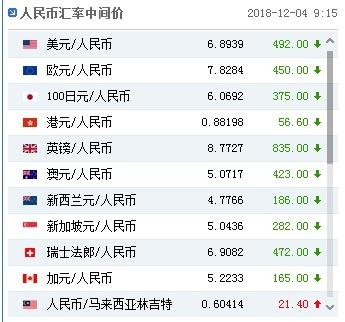 周二(12月4日),人民币兑美元中间价上调492个基点,报6.8939,创2018年9月28日以来最高,升幅创2017年6月1日以来最大。上一交易日中间价6.9431。上一交易日官方收盘价6.8885,上日夜盘收报6.8855。