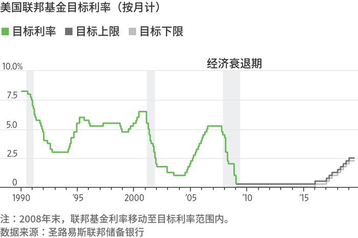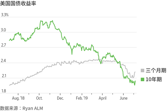 一个值得警惕的信号显示持续了10年的经济扩张可能很快就会结束,这就是长期和短期债券收益率之间的差距(收益率曲线)在今年早些时候变为负值。收益率曲线的倒挂出现在最近几次衰退之前,尽管这常常发生在基准10年期美国国债收益率低于3个月收益率很久之后。