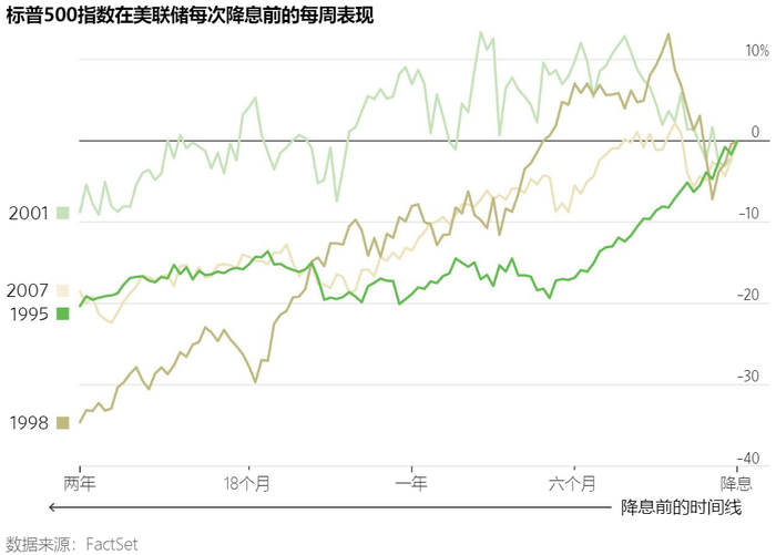 2001年,随着科技股泡沫破灭,股市在美联储降息前也出现了下滑。