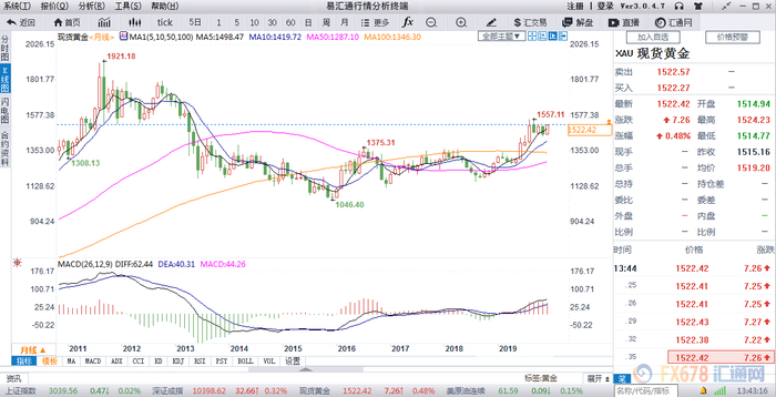 价格报1522.62美元/盎司,涨0.48%。