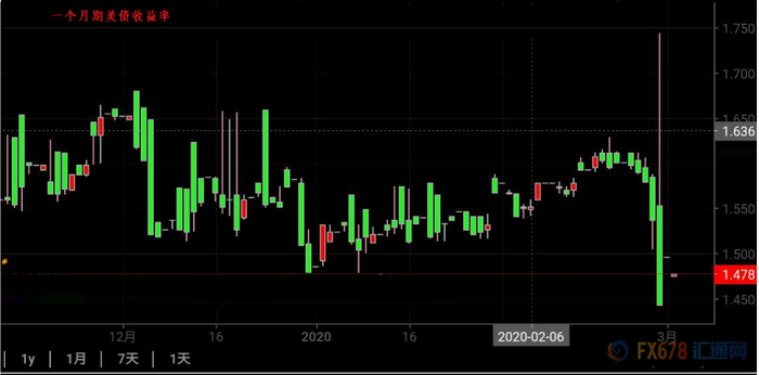 上周五(2月28日)10年期美债收益率首度跌破1.2%,且在本周一(3月2日)最低触及1.028%,逼近1%关口。而1个月期美债收益率目前仍位于1.4%上方,收益率曲线再次倒挂,预示着未来12-18个月美国经济存在进一步衰退的可能,这可能迫使美联储加快降息的步伐。