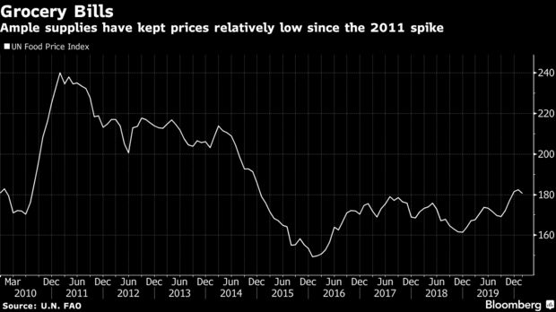 作为全球基准的芝加哥小麦期货价格在3月份上涨了8%以上。美国牛肉批发价格本周飙升至2015年以来的最高水平,鸡蛋价格也有所上涨。