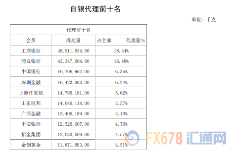 白银代理买卖方面和白银买卖总量反映的信息一致,白银的购买更多的集中在头部几个买家。其中工商银行和浦发银行成交量占比均高于15%,尤其是工商银行高达18.44%,而第三位的中国银行仅有6.35%,仅有工商银行三分之一左右。