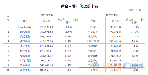 尽管在买卖总量上不及浦发银行,但是量化交易机构Jump trading在黄金自营买卖上占据榜首,而工商银行则占据代理成交榜首。