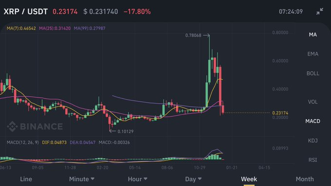 从走势看,瑞波币日内跌超10%。自从美国证券交易委员会发出指控的消息传出后,瑞波币的价格已经下跌了超过36%。