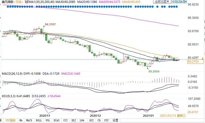 北京时间1月25日10:06,美元指数报90.24。
