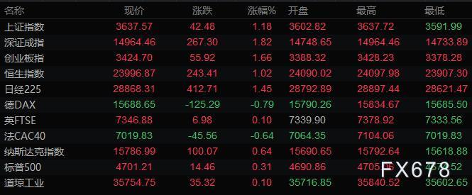 美股收盘情况:标普500指数上涨0.3%,纳斯达克综合指数上涨0.6%,纳斯达克100指数上涨0.4%,道琼斯工业平均指数上涨0.1%。