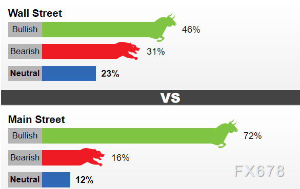 散户投资者则更加坚定地看好黄金的表现。Kitco的调查显示,在参与调查的1254名散户投资者中,72%的人预计金价会上涨,16%的人预计金价会下跌,12%的人持中性看法。这是自去年11月19日以来的最高参与率。