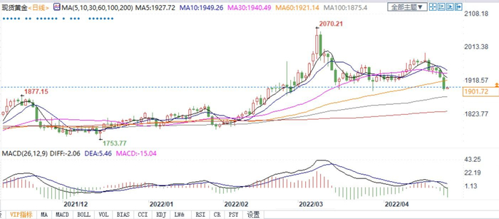 现货黄金日线图北京时间4月26日9:16,现货黄金报1901.67美元/盎司。