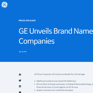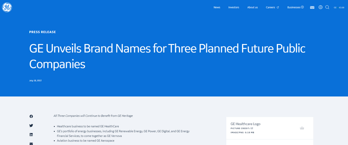 终于在2021年11月,卡尔普宣布了GE历史上最关键的拆分计划,将整个GE集团拆为三个独立公司。而本周一,这三家独立公司都被赋予了新的名字,也标志着新的开始。