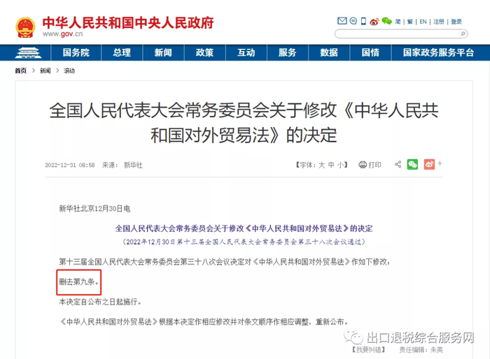 全国人民代表大会常务委员会关于修改《中华人民共和国对外贸易法》的决定(2022年12月30日第十三届全国人民代表大会常务委员会第三十八次会议通过)