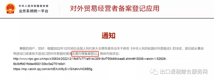 对外贸易经营者备案登记办法第二条规定,从事货物进出口或者技术进出口的对外贸易经营者,应当向中华人民共和国商务部(以下简称商务部)或商务部委托的机构办理备案登记;但是,法律、行政法规和商务部规定不需要备案登记的除外。
