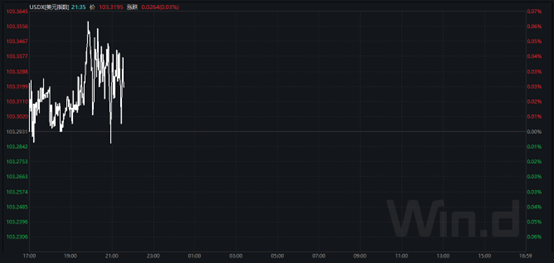 今日(3月21日),亚市盘初,美元指数低位窄幅震荡,截至北京时间9:35,报103.3195。