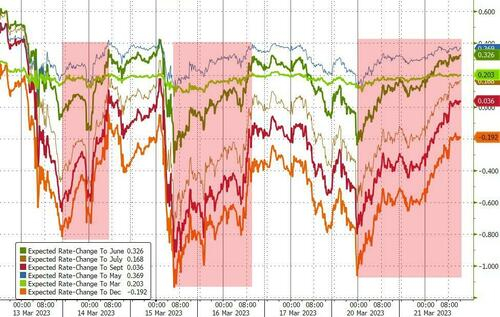 财联社3月22日讯(编辑 潇湘)在北京时间周四凌晨2点美联储正式公布3月利率决议前,或许没有人敢百分百确定,美联储主席鲍威尔和其同事们究竟会在此次议息会议上作何决策。不过,随着隔夜投资者对银行系统的乐观情绪增强,提振美国股市连续第二个交易日上涨,一些债券和利率市场的交易员们,似乎已经提前有了自己的判断……